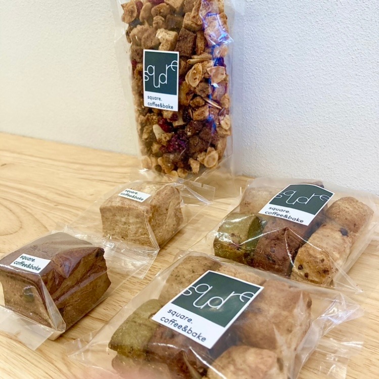 店頭にも並ぶ様々なフレーバーのスコーンをダイス状にカットし、アーモンドスライスや数種類のドライフルーツを加えてカリッと焼き上げています。