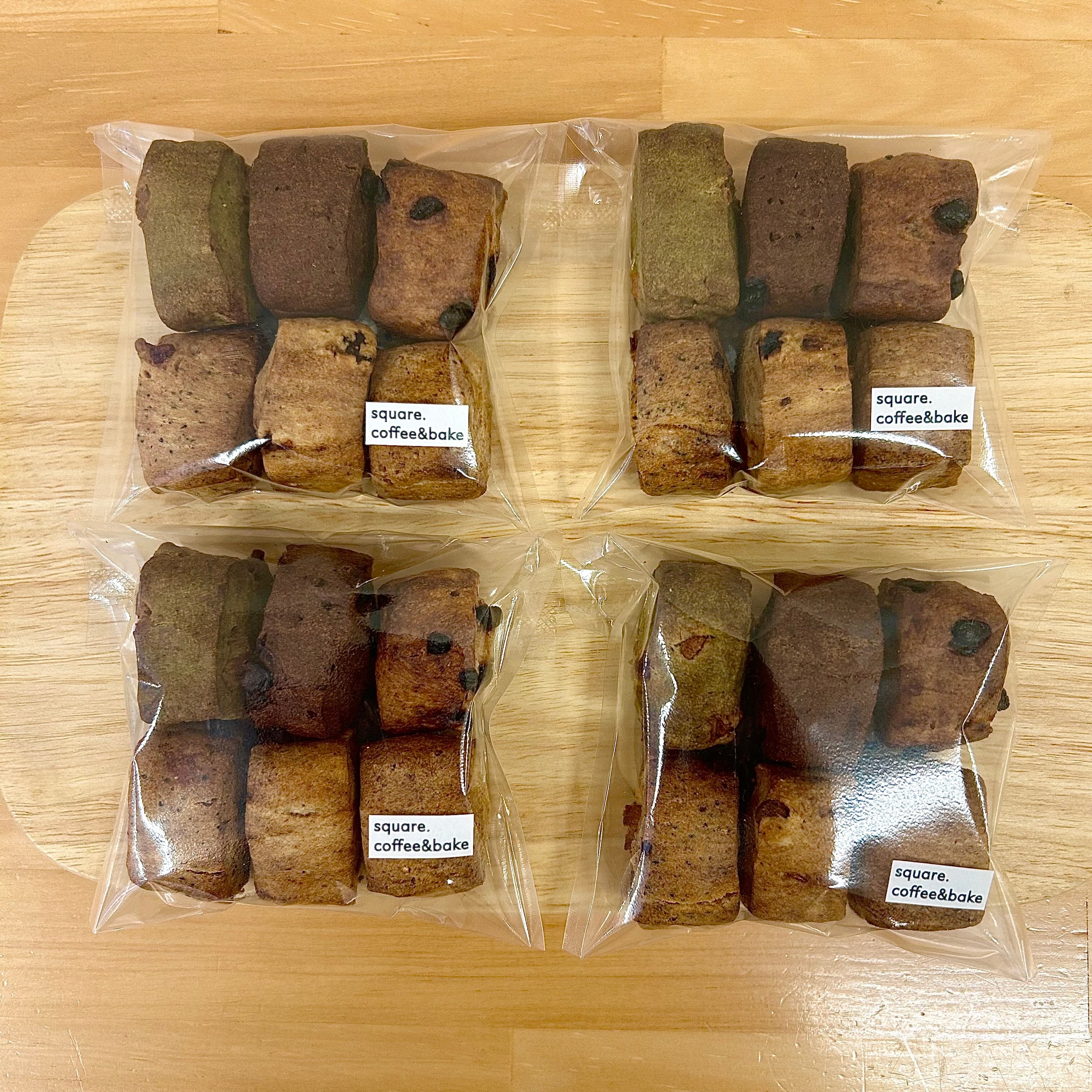 定番のスクエア型のスコーンを成形する際のはしっこをお得な詰め合わせセットでお届けします。通常のスコーンよりもしっかりとした焼き上がりでよりざくざく食感を楽しんでいただけます。小ぶりな一口サイズで食べやすく、6種のフレーバー入りなのでお試しやちょっとしたギフトにもおすすめです。
